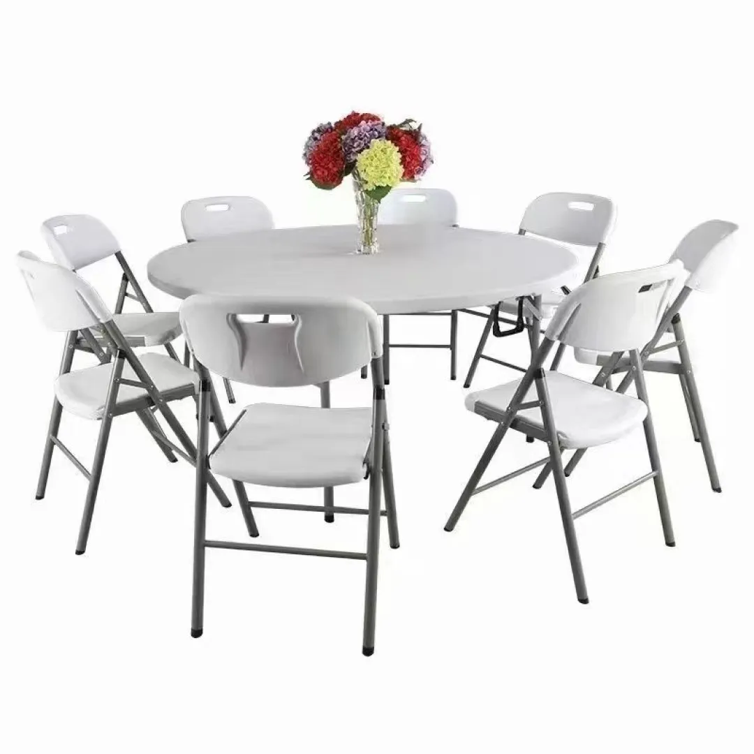 Sturdy folding tables for indoor and outdoor event setups, exhibitions, and parties.
